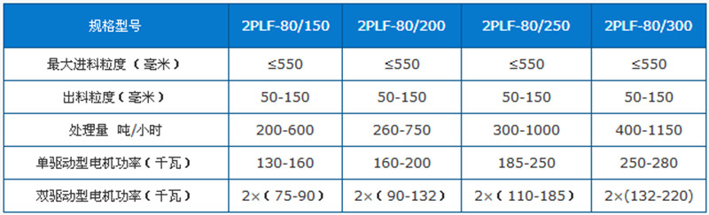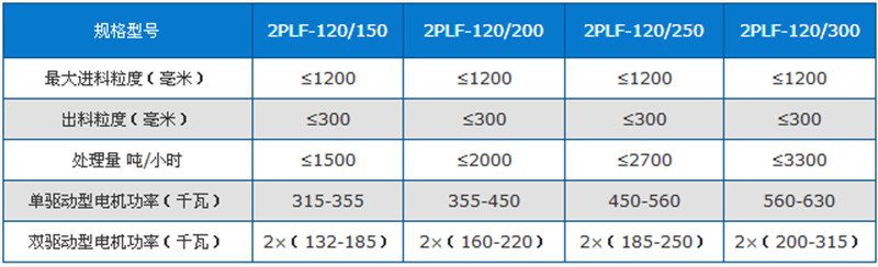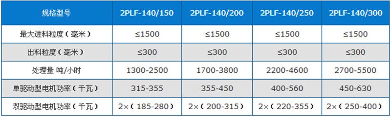 強(qiáng)力雙齒輥破碎機(jī)技術(shù)參數(shù)