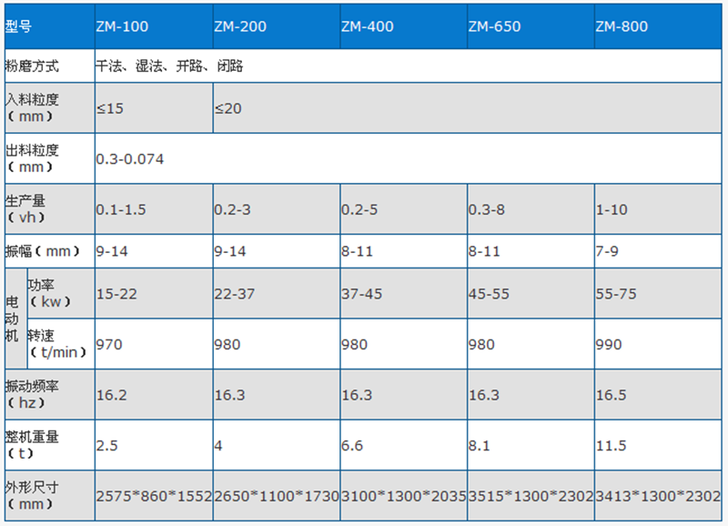 振動(dòng)球磨機(jī)技術(shù)參數(shù)