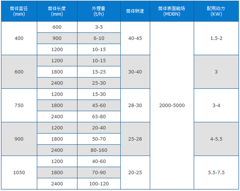 干式磁選機技術參數(shù)