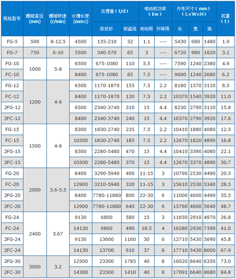 螺旋分級機主要由傳動裝置、螺旋體、槽體、升降機構、下部支座(軸瓦)和排礦閥組成。